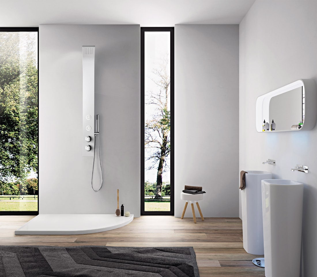 Cabine de dus cu usi culisante, inchidere magnetica, profile din otel inox, avand tratamente speciale anticalcar. Sticla este tratata pentru a creste rezistenta si a garanta cel mai inalt nivel de securitate atins tehnologic. In caz de spargere accidentala, foaia se sfarama in mici fragmente inofensive. Rezistenta usilor este verificata printr-un test de deschidere si inchidere de 20.000 de cicluri. Unitatile de dus sunt reversibile – pot fi prevazute cu partea de deschidere in dreapta sau pe partea din stanga, in functie de necesitatile spatiului.